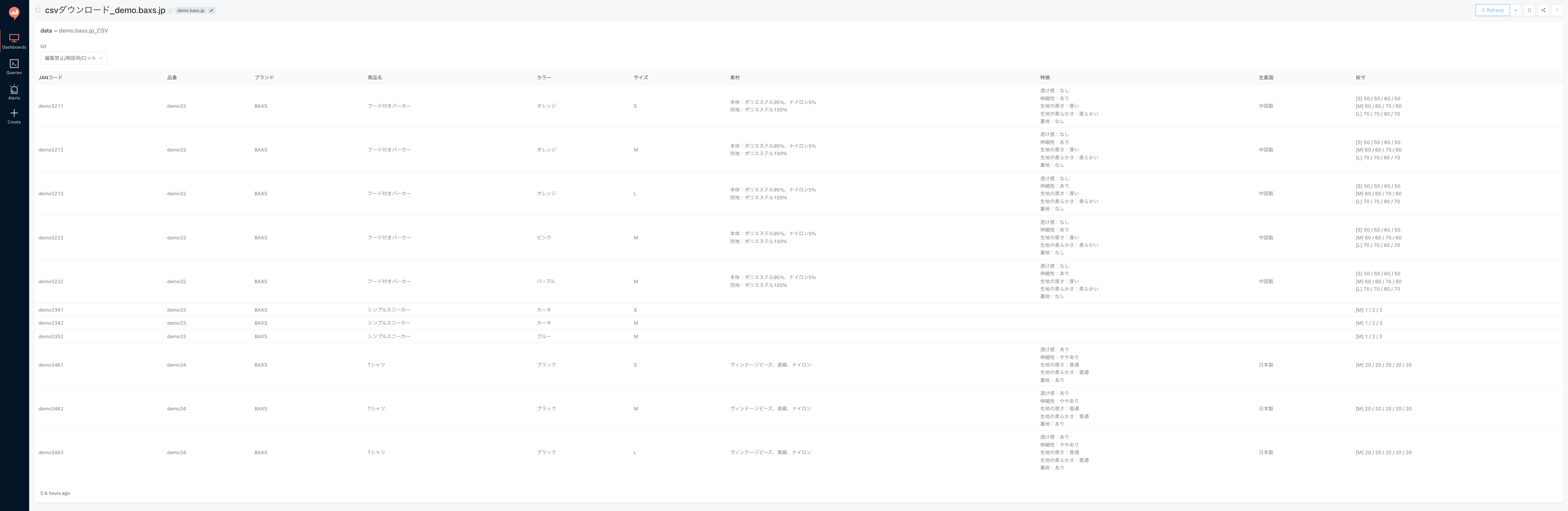 ・商品情報ダウンロード用ダッシュボード