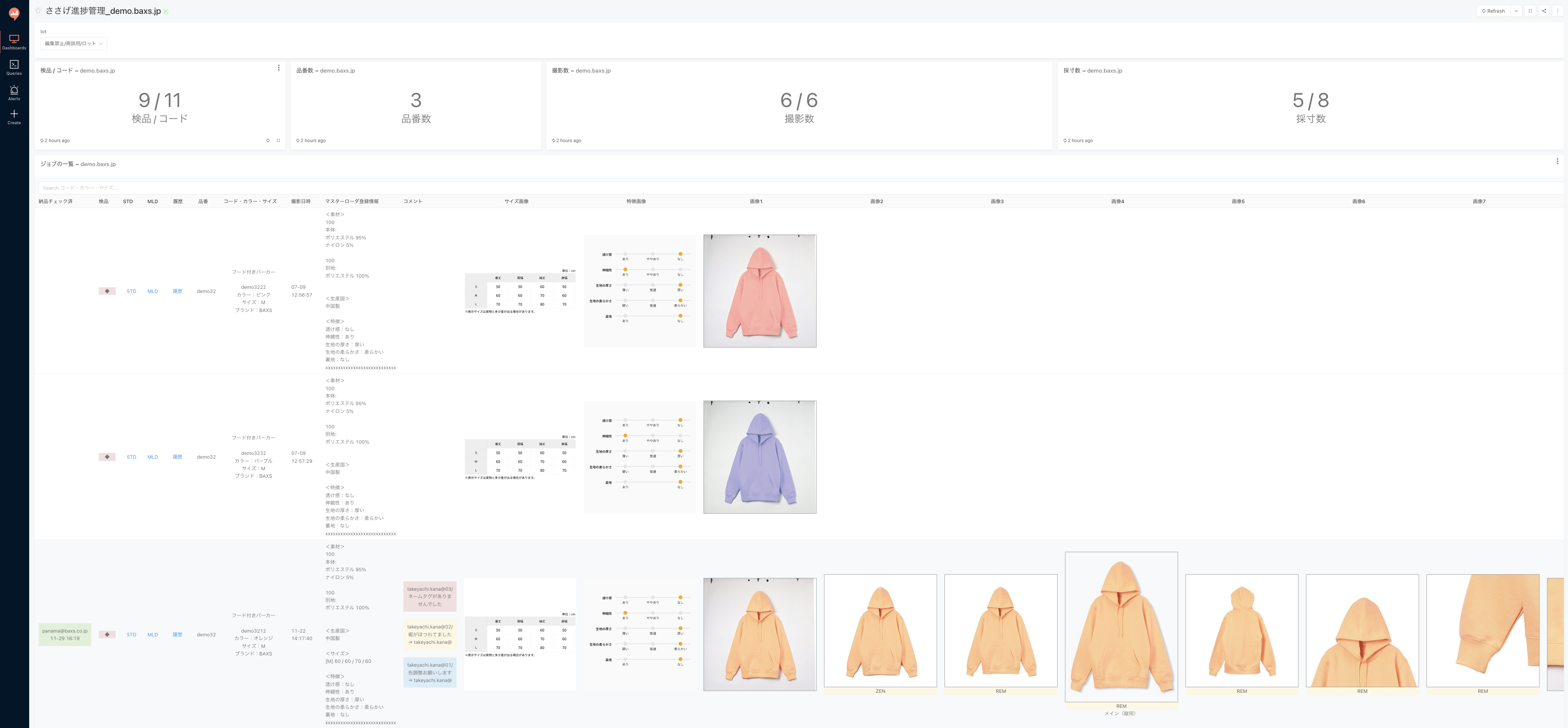 PANAMAスタジオでの撮影状況やPANAMAマスターローダでの情報登録の状況が、リアルタイムで確認できるダッシュボードです。