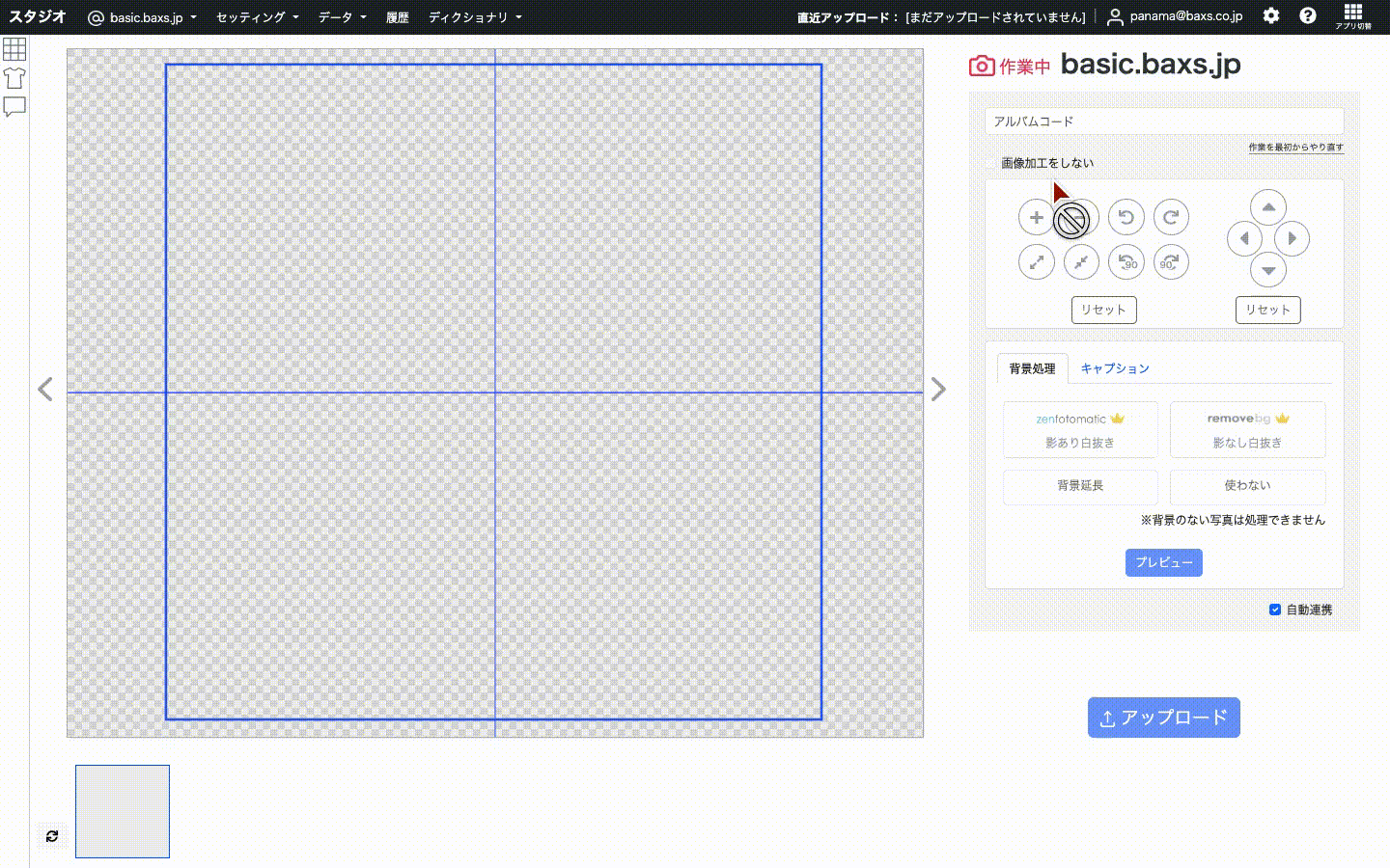 PANAMAスタジオを開き、ヘッダーから作業を行うドメインを選択する。