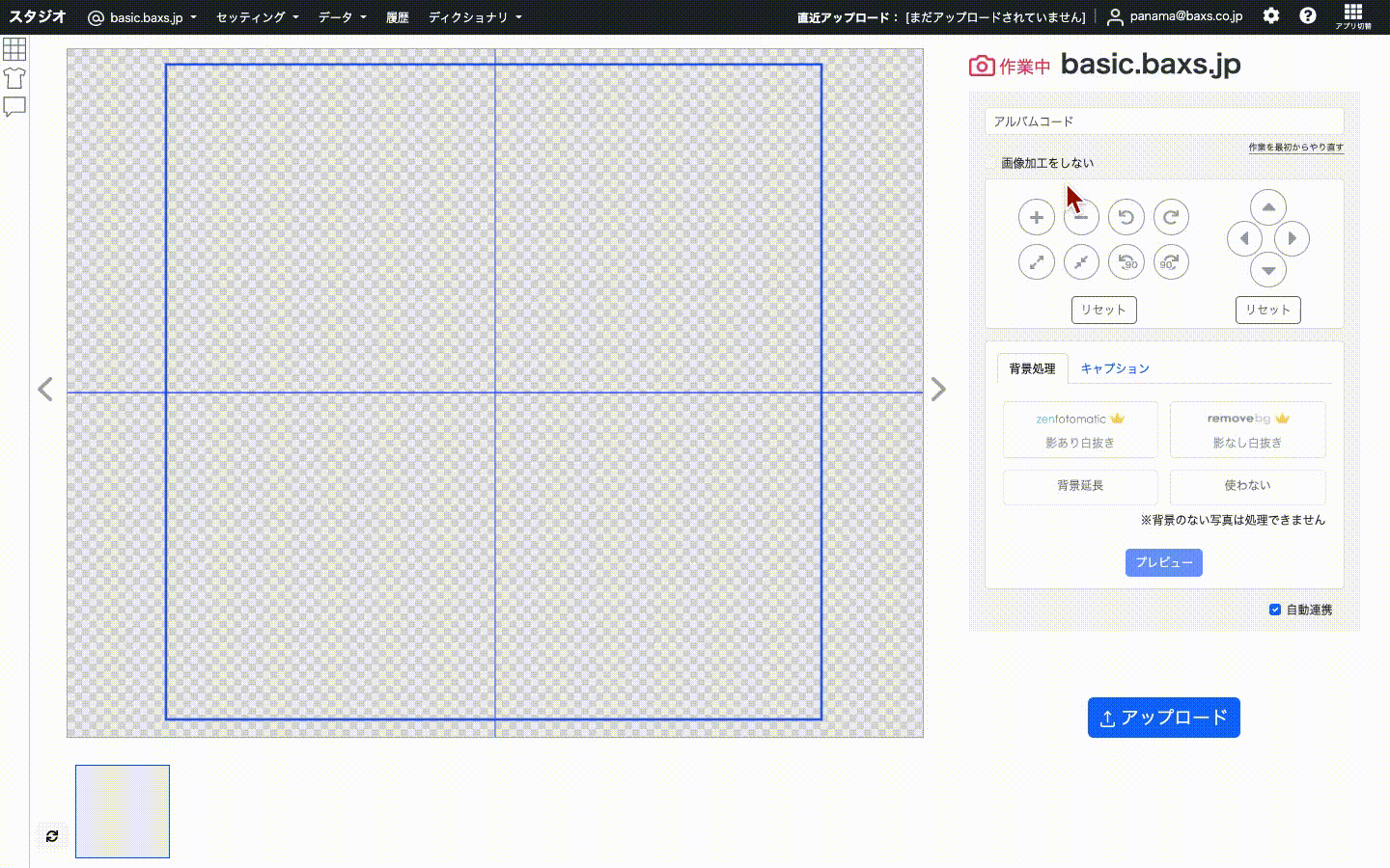トリミングガイドの作成方法は「トリミングガイドの作成方法」、PANAMAスタジオ内での表示方法は「【基本編】トリミングガイドの表示方法」に記載しています。