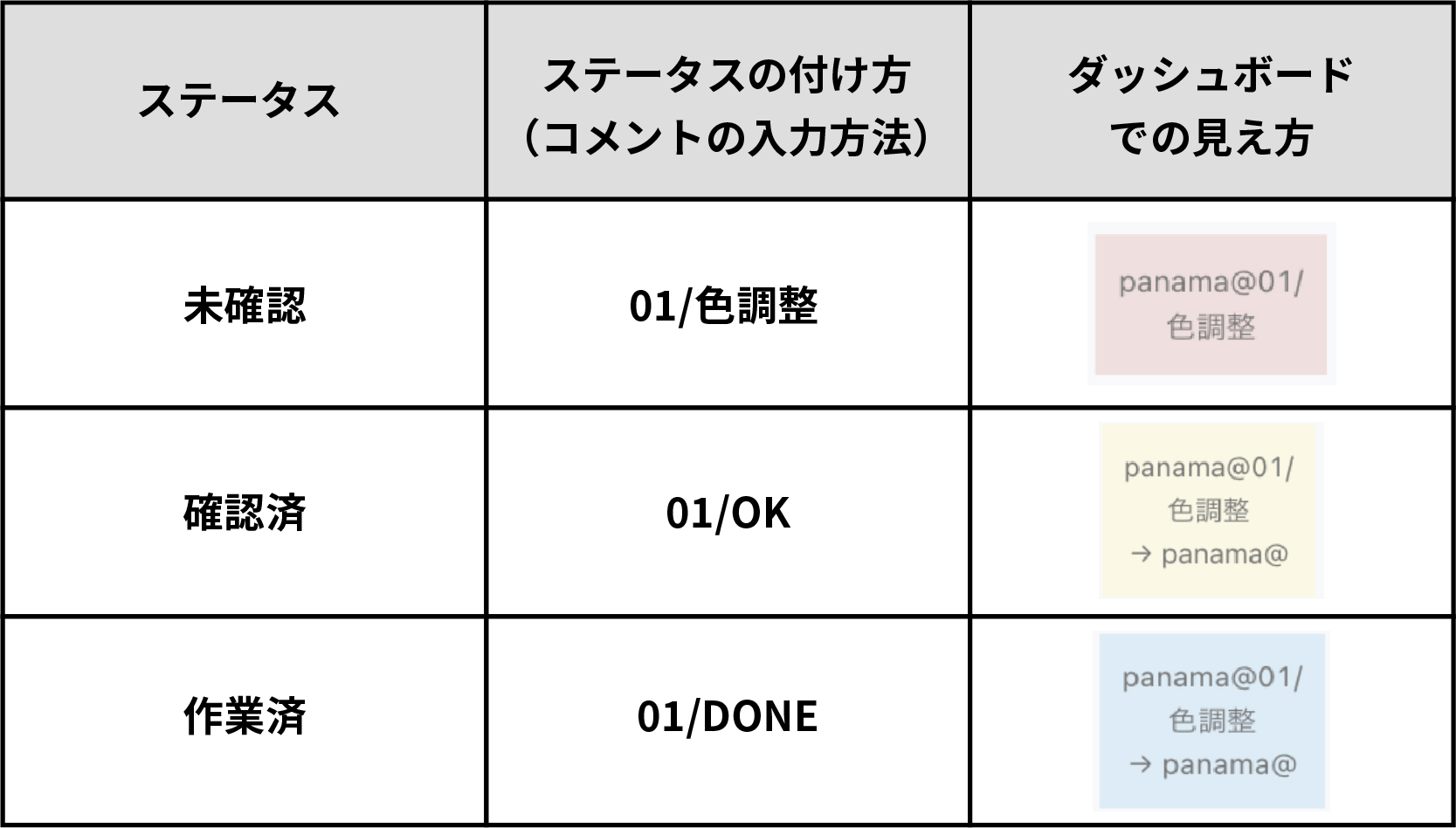この機能を使用すると、1つのコメントに対してステータスを付与できるようになり、ステータスによってダッシュボード上でのコメントの見え方を変えることができます。※