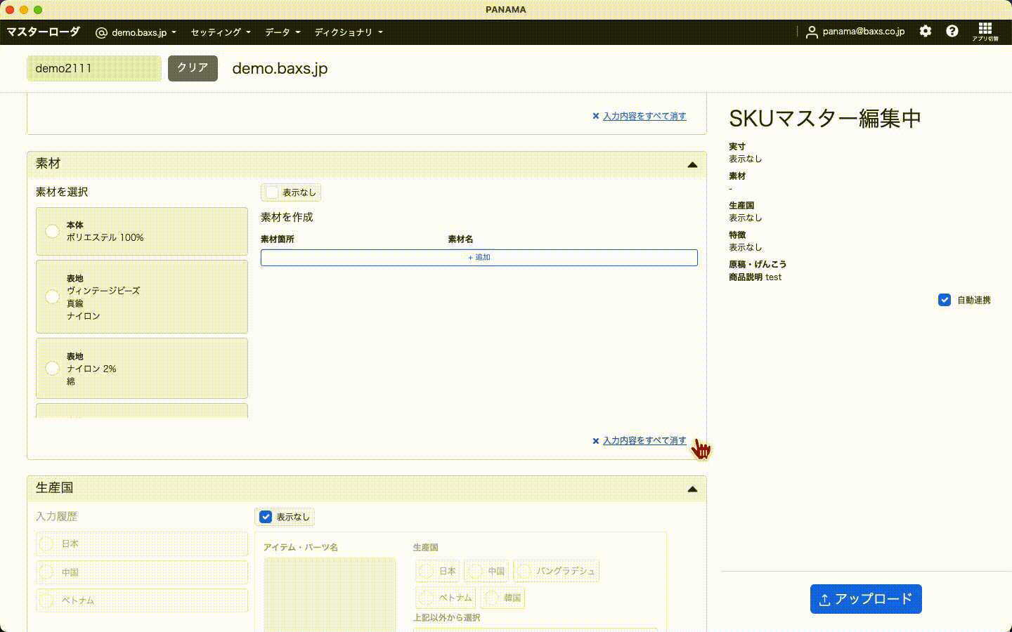 PANAMAマスターローダ「素材」フィーチャーの基本的な登録手順です。