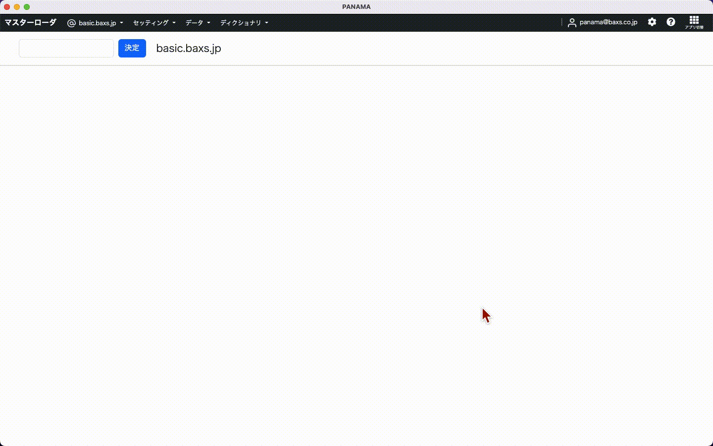 PANAMAマスターローダを開き、ヘッダーから商品情報の登録を行うドメインを選択する。